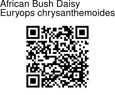 Peak flowering is in autumn-winter-spring, but flowers are usually found on the bush throughout the year. The genus name Euryops is derived from the Greek eurys meaning large and ops an eye, referring to the large flowers. The species name chrysanthemoides means resembling a chrysanthemum. The genus Chrysanthemum means gold flower from the Greek chrysos gold and anthemon a flower.