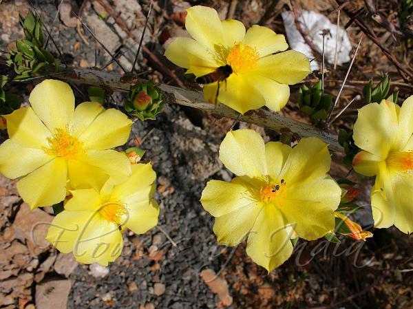 long. Flowers are yellow, 1.2-3 inches across. Fruits are top-shape to