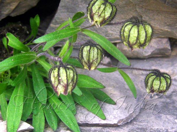 sparsely hairy. Capsule is ellipsoid-ovoid, 1-1.2 cm, 10-toothed. Seeds brown,