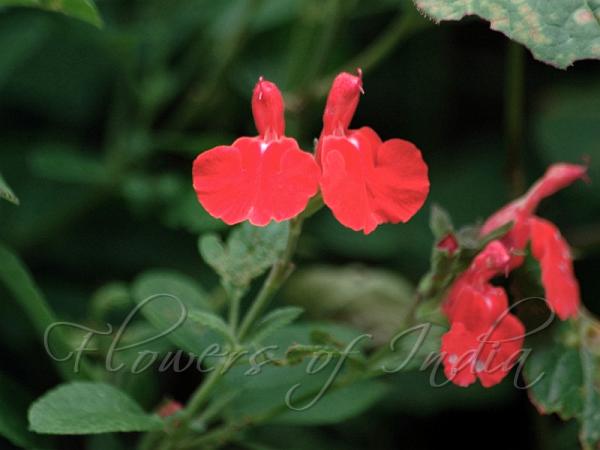 second year. Flowers are red, 2-lipped. The leaves are ovate shaped, of