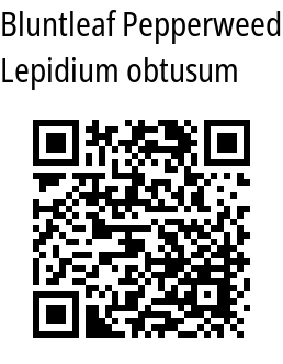Bluntleaf Pepperweed is a perennial herb, 45-85 cm tall. Stems are erect, branched, hairless. Basal and lowermost stem leaves are stalked, withered early. Upper stem leaves are stalkless or nearly so; leaf blade oblong-ovate, oblong, or lanceshaped, 0.3-9 x 0.1-2.5 cm, leathery, hairless or rarely sparsely velvet-hairy, base wedge-shaped or blunt, margin entire or rarely minutely toothed, tip blunt or pointed. Infructescence paniculate, ultimate branches capitate. Fruiting flower-stalks are 1-3 mm, slender, velvet-hairy. Sepals are persistent, ovate or nearly round, 0.9-1.5 × 0.8-1.5 mm, sparsely crisped hairy below, broadly white at margin and tip. Petals are white, obovate, 1.3-1.8 x 0.8-0.9 mm, base shortly clawed, tip rounded. Stamens are 6; filaments 1-1.4 mm. Fruit is broadly ovate, 1.6-2.3 x 1.8-2.2 mm. Bluntleaf Pepperweed is foun din pastures, field margins, waste places, deserts, in Central Asia to SW Siberia, Afghanistan and West Himalaya. Flowering: July-August.