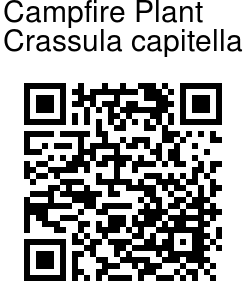 Campfire Plant is a biennial or perennial fleshy herb, up to 60 cm tall, growing from a tuberous root and with a basal rosette of leaves up to 10 cm in diameter, most prominent when young. The plant is distinctive in its reddish propeller like leaves. Plants are usually unbranched but may rarely form branches below the mid stem. Leaves along the stem are smaller and more pointed than basal leaves, gradually decreasing and becoming bract-like towards the top. Stems and leaf margins are fringed with hairs with white or greyish papillae. Tiny, star-like, white flowers are borne on tall, stout stems in summer. Flowers are 5-petalled, 2.25-4 mm long, white or reddish. Young plants form a distinctive, dense basal rosette of broad fleshy leaves before the stems appear. Campfire Plant is native to Africa, wide grown elsewhere as a garden plant.
