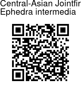 Central-Asian Jointfir is an evergreen shrub up to 1 m tall, densely branched, erect to spreading or sometimes with a creeping stem producing single, erect, green primary branches. Branchlets are yellowish or bluish green, often powdery, internodes usually 2-6 cm x 1.5-3.5 mm, straight or slightly bent. Leaves are arrange in whorls of 3 or opposite, fused for at least 2/3 their length, thus forming a cone-like structure. Pollen cones are up to 8, whorled, usually clustered at nodes, often stalkless; bracts in 3 or 4 pairs or whorls; anthers 5-8, stalkless or shortly stipitate; staminate column slightly protruding. Seed cones ellipsoid, ovoid, or oblong-ovoid; bracts in 2-5 pairs or whorls, outer ones fused at base, apical pair or whorl fused for about 1/2 their length, margins membranous, spherical, red, and fleshy at maturity; integument tube long, 3-5 mm, usually spirally twisted. Berry is ovoid, red. Central-Asian Jointfir is native to Afghanistan, Altay, Iran, Kazakhstan, Kirgizstan, Mongolia, Pakistan, Tadzhikistan, Tibet, Transcaucasus, Turkmenistan, Uzbekistan, West Himalaya, West Siberia. Flowering: May-June.