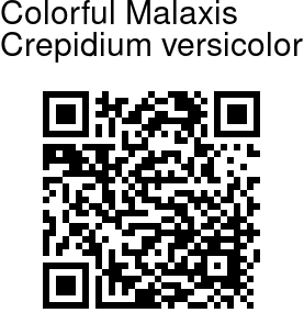 Colorful Malaxis is a terrestrial orchid with short stem, pseudobulb ovoid. Leaves are 2 rarely 3 stalkless or shortly stalkes, ovate to lanceshaped. Flowers are borne in densely flowered raceme atop leafless stem. Bracts are lanceshaped, deflexed. Flowers are small, yellow or purple, lip is short wedge-shaped or kidney-shaped, with comb-like teeth. It apppears similar to M. Rheedei, but always small, and pseudobulbous, with stalkless leaves and smaller flowers in denser spikes. Colorful Malaxis is found in India, up to Assam in the east, South India and Sri Lanka.