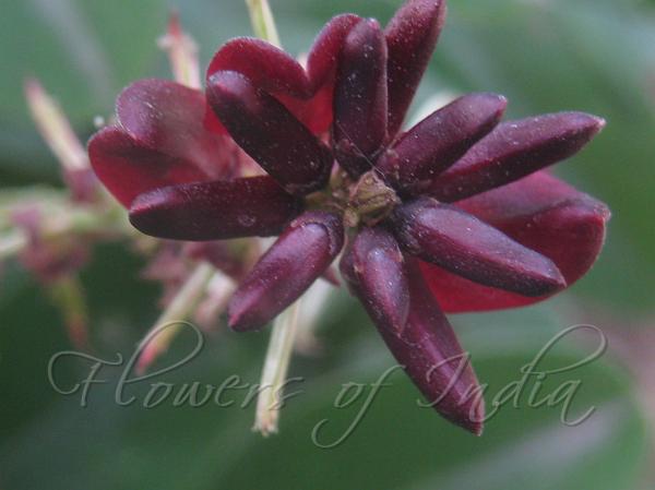 pea-flower-shaped, dark red or deep purple. Calyx c. 2.5 mm long, teeth