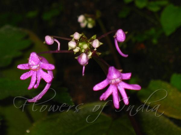 long as leaves. Flowers are numerous, about 2.5 cm long, pink, racemed