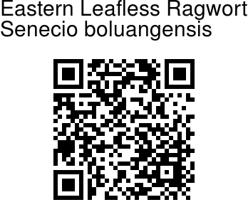 long, velvet-hairy. Pappus 5 mm long, white. Eastern Leafless Ragwort