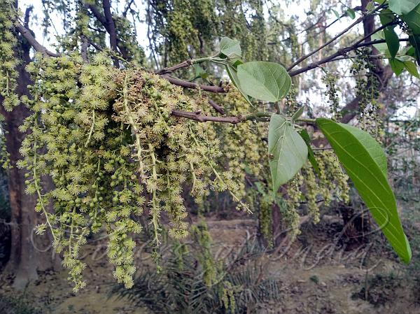 tips. Leaf-stalks are 3-7 cm long. Flowers small, greenish. Male