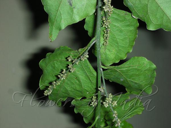 4-15 mm. ZTiny flowers are borne in spikes in leaf axils or at branch