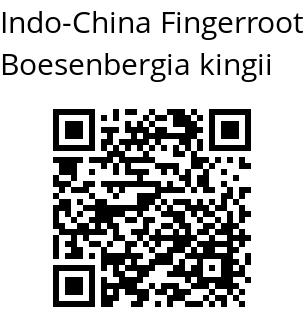 Indo-China Fingerroot is a stemless herb with perennial root stock, with rhizome 0.5-1.0 cm wide. It is named for named for Clarence King, 19th century geologist on the California Geological Survey. Flowers are 13-16 cm long, hairless, one flower open at a time. Sepal-cup 1.8-2.2 x 0.5-0.6 cm, tubular, translucent white or pale green, split up to 8-9 mm from tip. Flower tube 12.5-12.7 cm long, light red towards upper portion and white below. Petals are 3, oblong, creamy-white, margin involute; dorsal petal 3.0-3.3 x 1.2-1.4 cm, tip pouched; lateral petals 3.0-3.2 x 1.0-1.1 cm, tip slightly pouched. Staminodial tube 2 cm long, white. Lip 3.7-4.2 x 3.0-3.1 cm, widely ovate, sac-like, cream-white with throat red (with small white spots), margin wavy. Lateral staminodes are 2, 1.9-2.0 x 1.4-1.7 cm, broadly obovate, creamy-white, margin wavy. Stamens are 1.2-1.6 cm long, white. Flowers are borne in clusters arising from the root or at branch-ends, 15-18 cm long, carried on flower-cluster-stalk 1.5-1.7 x 0.5 cm, white or slightly maroon-tinged. Bracts are 9-10 per spike, oblong or boat-shaped, each subtending a single flower, 7.0-7.7 x 1.6-1.8 cm, white with green tinge or green with maroon tinge, hairless, thick and fleshy, translucent, tip pointed. Bracteoles are 4.7-5.0 x 0.6 cm, lanceshaped, pale green, translucent, tip blunt. White tuberous roots extend from the rhizome. Leafy shoot are 50-65 cm tall, with 2-5 leaves. Leaves are 40-55 cm long, leaf-stalk 11-25 cm long, blade 30-40 x 12-16 cm, elliptic, hairless, dark green above, light green below, tip tapering, base obliquely eared. Indo-China Fingerroot is found in moist shady places in evergreen forests, in NE India, Peninsular India, East Himalaya, China South-Central, Myanmar, Thailand. Flowering: May-August.