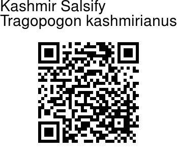 Kashmir Salsify is a biennial herb, 25-60 cm tall, almost hairless, simple or branched. Leaves are linear, gradually narrowed above from dilated base, up to 25 cm long, upper ones successively smaller. Flower-heads are borne singly on inflated stalks. Phyllaries are 8-11, 4-6 cm long, with scaly margins. Ligules are 2-2.5 cm long, yellow, purple striated. Anthers are 3-4 mm long, lower half yellow, upper violet. Flowers close during day but open in morning and dull weather during day. Achenes are greyish brown, 1.3-1.6 cm long, gradually narrowed to 1.2-2 cm long beak. Pappus bristles are tawny, straight, plumose except for naked distal end, 2.5-4 cm long, united below into a disc; disc wooly. Fruiting heads are 7-9 cm across, pappus hairs ashy. Kashmir Salsify is endemic to the Kashmir valley. The vegetable called salsify is usually the root of purple salsify, Tragopogon porrifolius; the root is described as having the taste of oysters (hence the alternative common name "oyster plant" for some species in this genus), but more insipid with a touch of sweetness. The young shoots of purple salsify can also be eaten, as well as young leaves