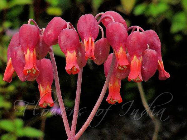 flower. Flowers are orange, coral or apricot color, hanging down.