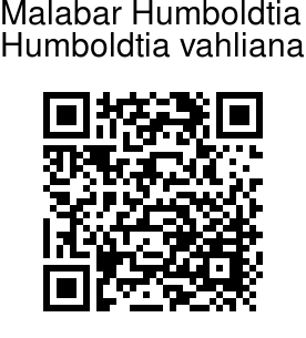 Malabar Humboldtia is a tree, up to 18 m tall, bark 5-6 mm thick, dark brown mottled with white; blaze pink; internodes of the branchlets solid, round, hairless; branchlets sometimes zig-zag. Leaves are paripinnate, alternate; stipules 1.5-3 x 2.2 cm, lateral, persistent, ovate-heart-shaped. Leaflet-stalk is 7-10 mm long, stout, velvet-hairy or not; blade 10-25 x 3-6.4 cm, oblong-lanceshaped, base blunt, tip tapering, leathery, hairless; lateral nerves 8-14 pairs. Flowers are bisexual, white, 27-30 mm long, in many flowered, in leaf-axils brown velvety racemes; flower-stalk 5-6 mm long; bracts lanceshaped, pointed, hairy on both surfaces, persistent; bracteoles 2, fused by base, obovate, rounded at tip, fugacious; calyx tube 8-10 mm long, lined by the disc, obconical, brown hairy; lobes 4, obovate-oblong, rounded at tip, slightly concave; petals 5, 10-12 x 4 mm, obovate, shortly clawed, broadly rounded at tip, hairless; stamens are 5, perfect, alternating with 5 minute staminodes; filaments 1 cm long, red; ovary 4-5 mm long, half inferior, obliquely linear, ovules 3-4; style 10-15 mm long, thread-like, hairy at base, reddish; stigma capitate. Fruit is a pod, 15-20 x 3.7-6 cm, elliptic, compressed, sutures thick valves prominently veined, brown hairy; seeds 3-4, almost round, hairless. Malabar Humboldtia is endemic to the Western Ghats - occasional in South Sahyadri and in South Malabar; rare in Palakkad-Kozhikode Region of North Malabar. Flowering: February-April.
