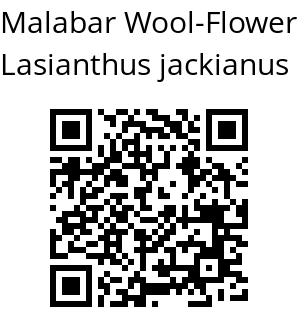 Malabar Wool-Flower is a large shrubs or small trees up to 5 m tall. It is named for John George Jack, 20th century Canadian dendrologist and explorer of North America and Europe. Bark is brown, smooth. Branches are horizontal, branchlets nearly round to compressed, hairy. Leaves are simple, opposite, decussate; stipule triangular, interpetiolar, falling off and leaving scar; leaf-stalk 0.2-0.5 cm long, planoconvex in cross section, hairy. Leaf blade is 5.5-17 x 2-4 cm, narrow elliptic to oblong or inverted-lanceshaped, tip sharply tapering, falling off, base pointed to rounded, margin entire and fringed with hairs, hairy beneath; midrib channeled above; secondary_nerves 7-8 pairs; tertiary_nerves horizontally closely percurrent. Flowers are borne in cymes, in leaf-axils. Flowers are stalkless, white. Drupe is spherical, surmounted with persistent sepals, seeds 4. Malabar Wool-Flower was believed to be endemic to southern Western Ghats - South Sahyadri and Palakkad hills and Wayanad in Central Sahyadri. However, recently it has been found in Arunachal Pradesh too.