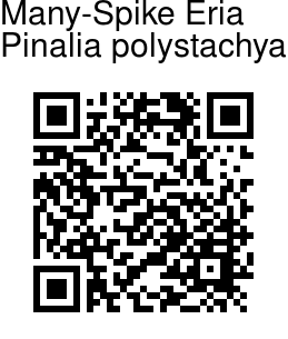 Many-Spike Eria is an orchid growing on trees. which blooms with multiple spiked of flowers. Pseudobulb is 2-3 cm long, covered with sheaths. Leaves are 13-16 x 2 cm, oblong, pointed. Flowers are yellowish, in 10-15 cm long, many-flowered racemes at branch ends. Dorsal sepal is 7.1 x 1.2 cm, linear-lanceshaped, pointed, 3-veined; lateral sepals 6 x 1-2 cm, sickle shapedly ovate-lanceshaped, pointed, 3-veined; lip 3 x 0.8-1 mm, oblong, lanceshaped, subpointed, disc with 2 ridges at base, 3-veined. Many-Spike Eria is endemic to Southern Western Ghats.