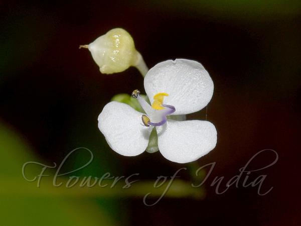 blunt, concave. Petals are 3, white, 5-6 x 3-4 mm, ovate, blunt.