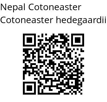 Nepal Cotoneaster is a tall, attractive deciduous shrub, up to 6 m tall. It bears attractive, thick, oval, leathery leaves which are hairy underneath, and slightly blistery above. Leaves are rather large, 5.5-10.5 cm long. Flowers are white with prominent protruding stamens, borne in 7-20-flowered clusters in leaf axils. Flower-clusters are typically smaller than the leaves. Anthers are purple to reddish-brown. In late autumn the plant produces globular berries, which are bright crimson to maroon or yellowish-green, 1.2 cm across, with two stones. Nepal Cotoneaster was known only from Nepal, but probably also occurs in Himachal Pradesh.