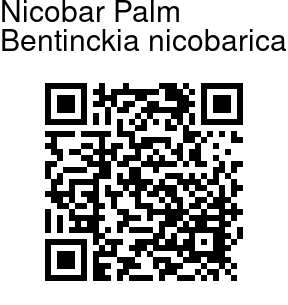 Nicobar Palm is an attractive palm that at first glance looks like a King Palm, but can be differentiated by the slightly arched leaves and the exceptionally long, yellow-green crownshaft with the slight bulge at the base. It grows up to about 20 m tall and girth is about 25 cm. It is a solitary palm, and has arching pinnate leaves and a light green crown shaft. Inflorescences arise from below the lowest frond, cream, spirally arranged. Fruits are globular, black, about 1 cm in diameter, and the single seed is grooved on one side. Nicobar Palm is endemic to Nicobar island.