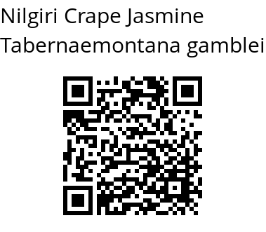 Nilgiri Crape Jasmine is a near-threatened shrub, up to 5 m tall. It is named for 20th century English botanist James Sykes Gamble. Latex is milky white. Leaves are simple, opposite, pairs unequal, decussate; leaf-stalk 1 cm long with a short clasping sheath at base. Leaf-blade is 6.5-12 x 2.4- 4.5 cm, elliptic or elliptic-lanceshaped, tip with a tail-tapering, acumen to 2 cm long, base pointed, hairless, pale beneath; midrib raised above; secondary nerves 7-9 pairs, tertiary nerves netveined. Flowers are bisexual, borne at branch-ends, in corymb-like cymes. Flowers are white, flower-stalks stout, 1 cm long; sepals ovate, blunt; flower tube to 1.7 cm long, cylindrical; petals 1.5 cm long, oblong, blunt. Seed-pods are 4 x 1 cm, not curved; aril red. Nilgiri Crape Jasmine is endemic to Southern Western Ghats.