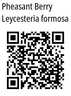 Pheasant Berry is a deciduous shrub native to the Himalayas and SW China. It has soft, hollow, upright green stems 1-2 m tall, which only last for 2-5 years before collapsing and being replaced by new stems from the roots. Oppositely arranged dark green leaves, 6-18 cm long and 4-9 cm broad, have an entire or wavy margin. The flowers are produced on 5-10 cm long pendulous racemes. Each flower is small, white, subtended by a purple bract. The fruit is a soft purple-black, toffee tasting berry 1 cm across, eaten by birds. Pheasant Berry was popularly used in Victorian shrubberies. Pheasant Berry is found in forests and shrubberies in the Himalayas, from Pakistan to Burma, at altitudes of 2100-3000 m. Flowering: May-July.