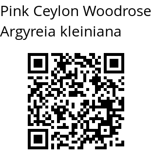 Pink Ceylon Woodrose is a powerful twiner with stems sparsely hairy. Leaves are about 10 cm, shallowly heart-shaped, ovate, somewhat pointed at tip, hairless above, sparingly hairy beneath. Leaf-stalks are about 5 cm long. Rose-purple flowers are borne in corymbs 5-10 cm across, carried on 7-15 cm long flower-cluster-stalks. Flowers are tubular-funnel-shaped, 6 cm or more, hairy outside. Sepals are 5 mm, ovate, blunt, hairy. Bracts are 2.5 cm by 6 mm, lanceshaped, persistent. a few outer sometimes leaf-like and stalked. Pink Ceylon Woodrose is found in South India and Sri Lanka.