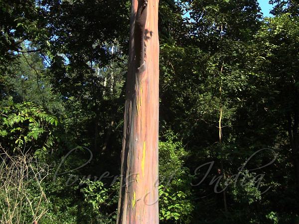 Rainbow Eucalyptus is the only Eucalyptus species found naturally in the Northern Hemisphere. Its natural distribution spans New Britain, New Guinea, Ceram, Sulawesi and Mindanao. Now, this tree is cultivated widely around the world, mainly for pulpwood used in making paper. It is the dominant species used for pulpwood plantations in the Philippines. This tree is also grown for ornamental purposes, due to the showy multi-colored streaks that cover the trunk. Patches of outer bark are shed annually at different times, showing the bright-green inner bark. This then darkens and matures to give blue, purple, orange and then maroon tones.