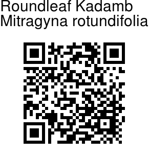 Roundleaf Kadamb is a medium sized tree, with branches angled to nearly round, hairless to becoming hairless. Leaves are simple, opposite decussate; stipules elliptic-oblong to ovate, 1.3-5 x 0.5-3 cm, pilosulous, keeled, blunt to rounded at tip. Leaf-stalks are about 1.5-6 cm, hairless to densely pilosulous; blade about 7-20 x 4-15 cm, round, obovate-elliptic, rounded or nearly heart-shaped at base, bluntly tapering at tip, entire, slightly hairy beneath; secondary nerves 5-7 pairs. Flowers are borne in dense round heads, velvet-hairy, flower-cluster-stalks about 0.1-0.3 cm. Flowering heads are 1-5, about 0.7-1 cm in diameter across calyces, about 1.5-2 cm in diameter across flowers. Flowers are yellowish white, outside hairless, densely hairy inside; tube about 2-3 mm; petals narrowly inverted-lanceshaped, about 4-5 mm, pointed. Fruiting heads are about 1-1.6 cm in diameter. Capsules are about 3-5 mm, weakly ridged, with persistent sepal-cup thickened; seeds about 0.1 cm. Roundleaf Kadamb is found in East Himalaya, China and SE Asia.