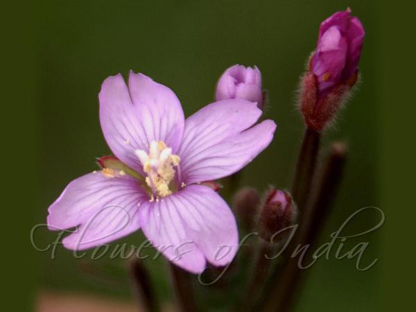 ft tall. Flower are small, pink, 6-9 mm across, with 4 pink petals.