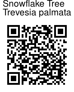 Snowflake Tree is an unbranched small tree, 3-8 m tall, with short prickles on the stem. Leaves are large, 30-60 cm across, deeply palmately divided or cut, lobes long pointed, toothed. Leaf stalks are 60-80 cm long. Flowers are small, yellowish in roundish umbels which are arranged in panicles at the ends of branches. They look like snowflakes on the tree, inspiring its common name. Fruit is 1.6 cm long, ovoid. This tree is used medicinally and as an ornamental. Snowflake Tree is found in E. Himalayas, from Nepal to Assam, Burma, W. China, Malaya, at altitudes of 250-2500 m.