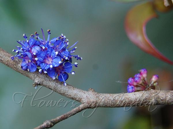 branchlets, bearing blue many-flowered cymes 1 cm across.