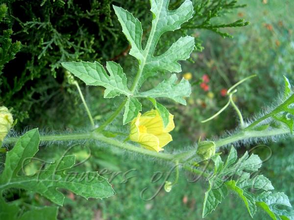 or creeping on the ground, with curly tendrils. Leaves are 5-20 by 3-19 cm,