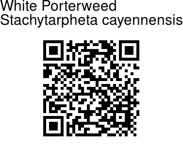 Botanical name:Stachytarpheta cayennensisFamily:Verbenaceae (Verbena family) Synonyms: Stachytarpheta australis f. albiflora, Stachytarpheta cayennensis f. alba