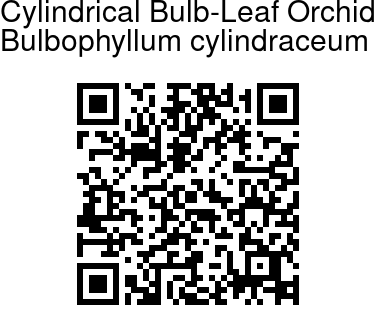 Botanical name:Bulbophyllum cylindraceumFamily:Orchidaceae (Orchid family) Synonyms: Phyllorkis cylindracea, Bulbophyllum imbricatum