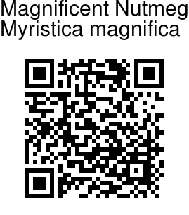 Botanical name:Myristica magnificaFamily:Myristicaceae (Nutmeg family) Synonyms: Myristica fatua var magnifica