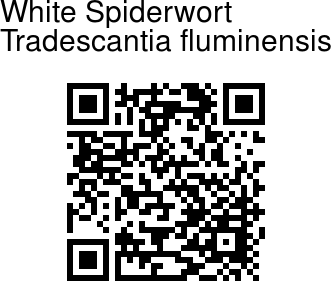 White Spiderwort is a trailing groundcover plant with succulent stems. The glossy forest-green to parrot-green parallel-veined leaves are oblong to ovate with pointed tips, 2.5-6.4 cm long and 2.5-2.8 cm wide. Leaves are sometimes subtly striped with darker green or tinged with purple on the underside. Sometimes the leaves are slightly puckered with a seersucker texture. They emerge alternately from fuzzy margined closed sheaths that encircle the stem at the nodes. The little white three petaled flowers appear in clusters at the stem tips. The three parted capsules contain pitted black seeds. The cultivar 'Variegata' has bright green leaves with irregular white stripes. White Spiderwort is native to South America, cultivated as a garden plant in India.